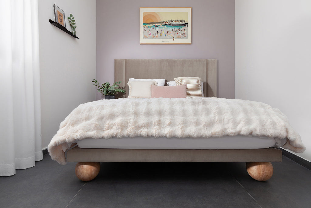 מיטת זארה מביאה איתה את הקסם של עיצוב מינימליסטי עם נגיעות טבעיות. שילוב מושלם בין קווים נקיים ופונקציונליות עם אלמנטים מחממים כמו רגלי העץ העגולות המיוחדות והראש המרופד.
