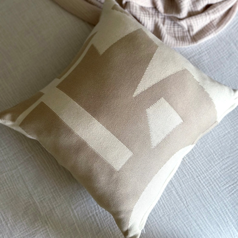 כרית אריה בצבעי חול ושנהב, כרית מדהימה עם נוכחות. כרית בעיצוב ג'קארד צבעים עדינים מושלמת לספה בסלון ותהיה יפה גם בחדר השינה.