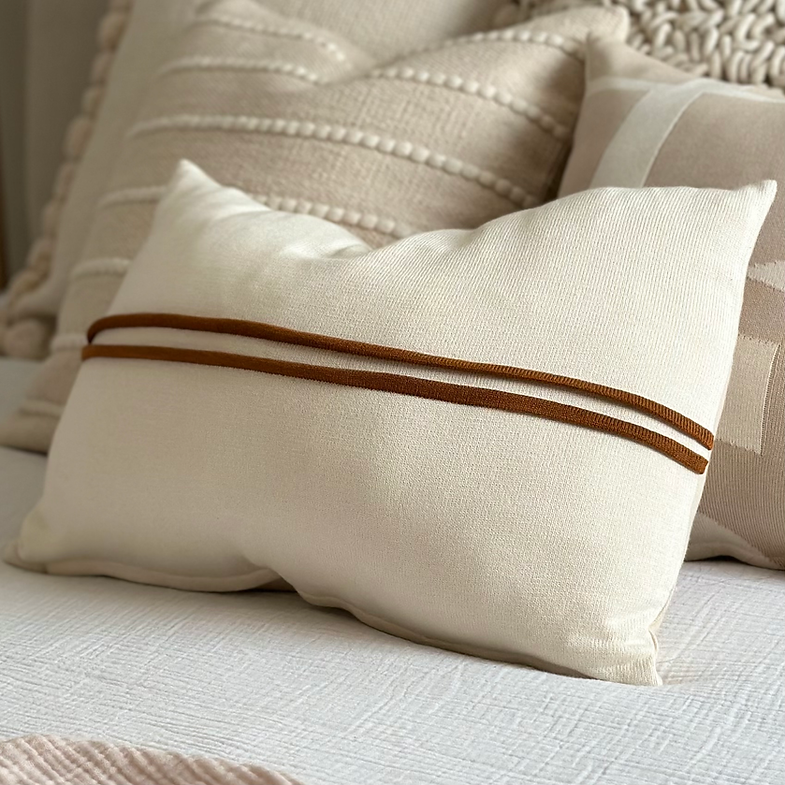 כרית יטי בצבעי שנהב עם פסים בצבע חום טרקוטה, קלאסית ונקייה. הפסים העדינים שלה בולטים ויוצרים טקסטורה מרשימה ומעניינת. היא מושלמת לספה בסלון ותהיה יפה גם בחדר השינה.